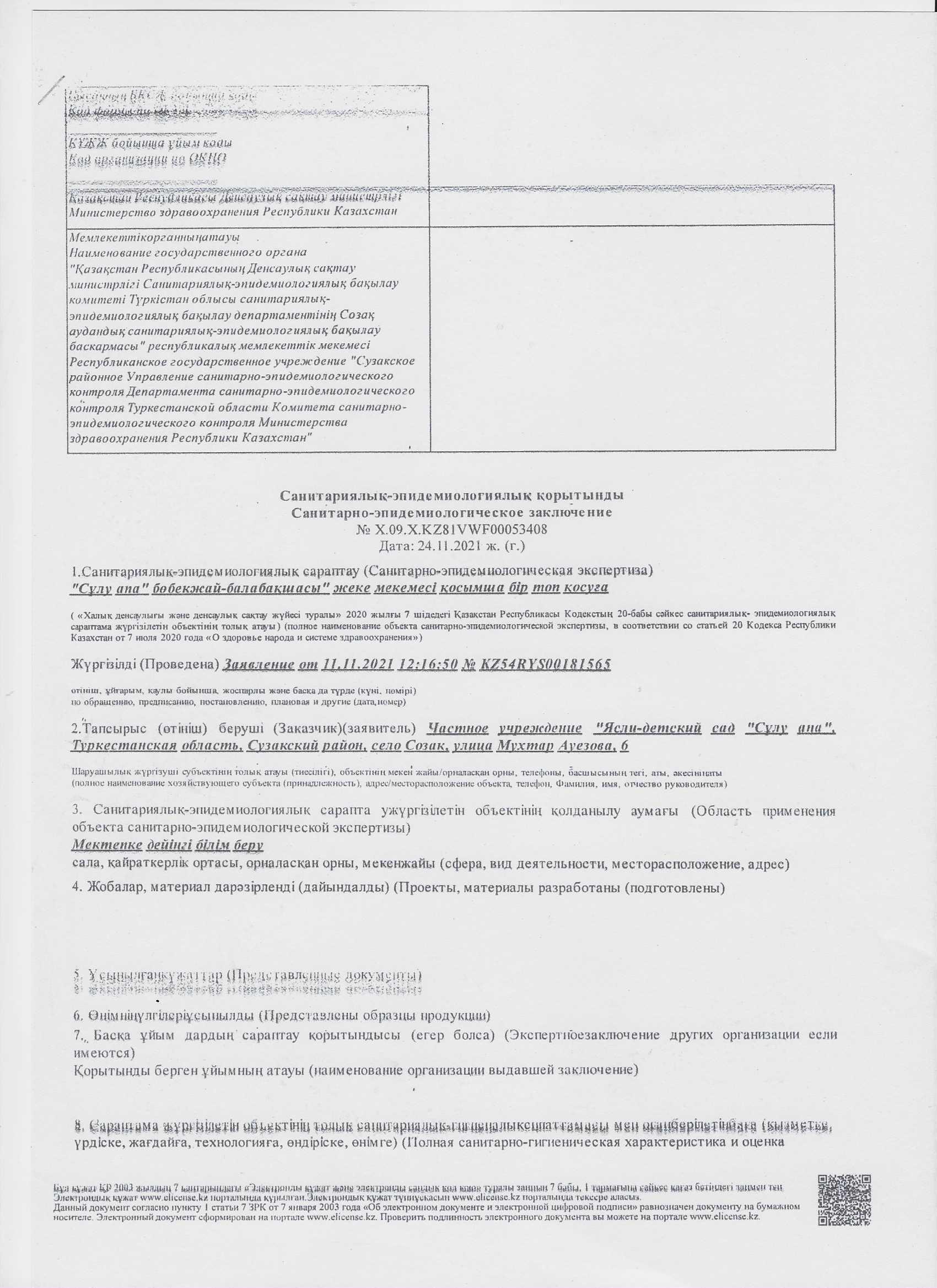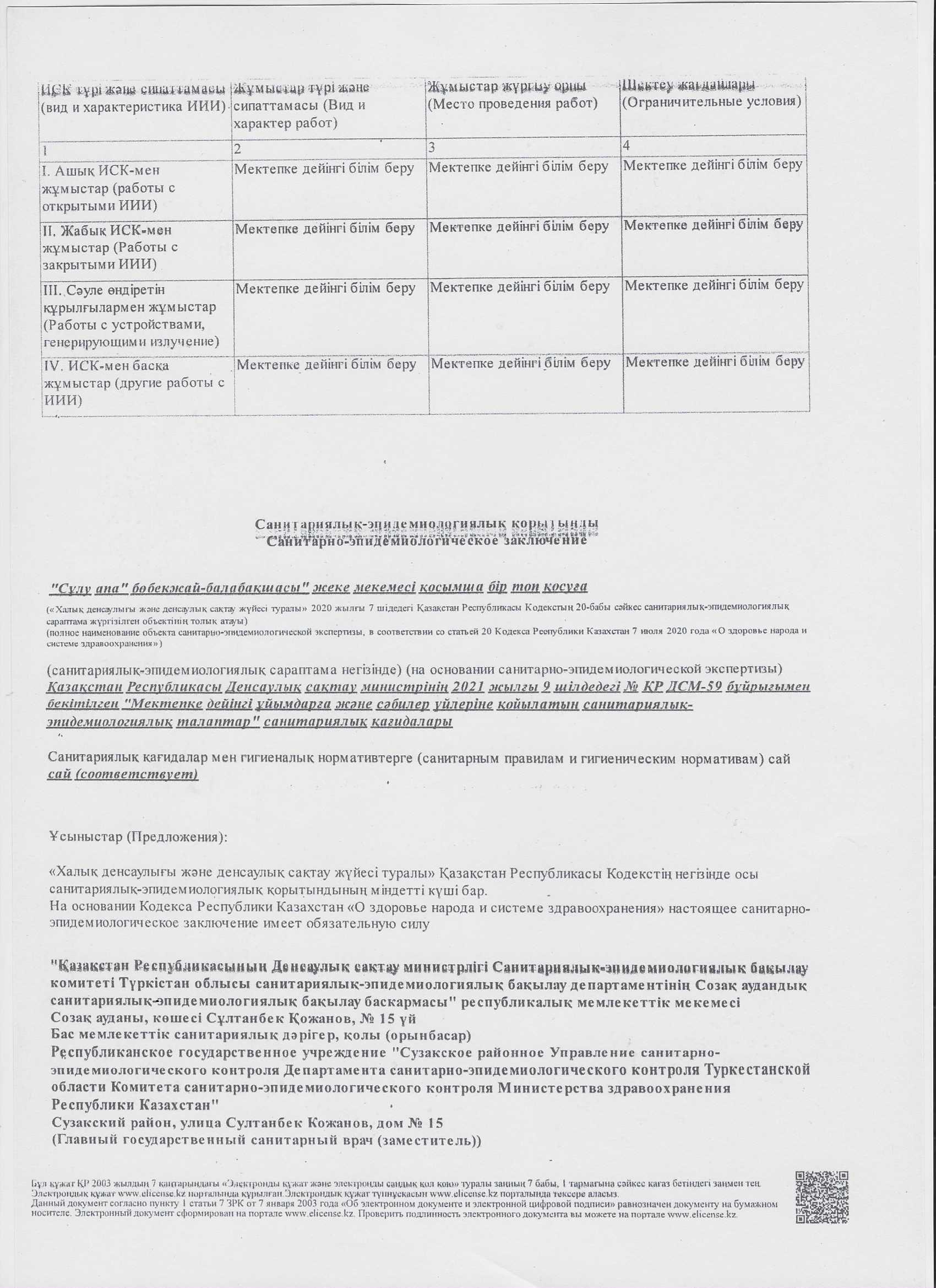 Санитариялық-эпидемологиялық қорытынды