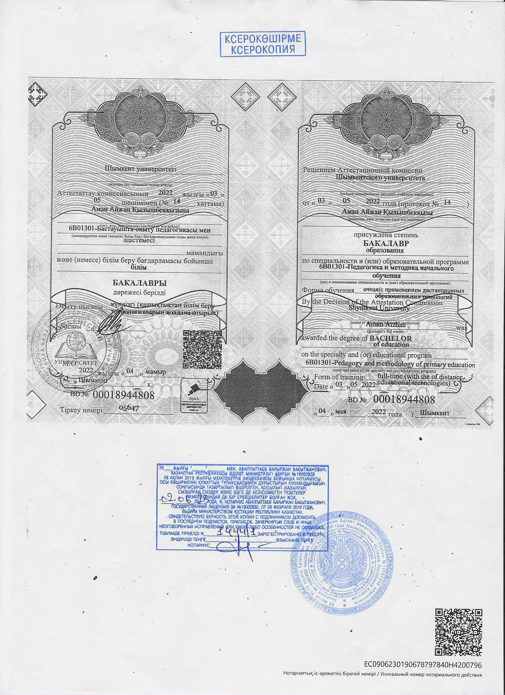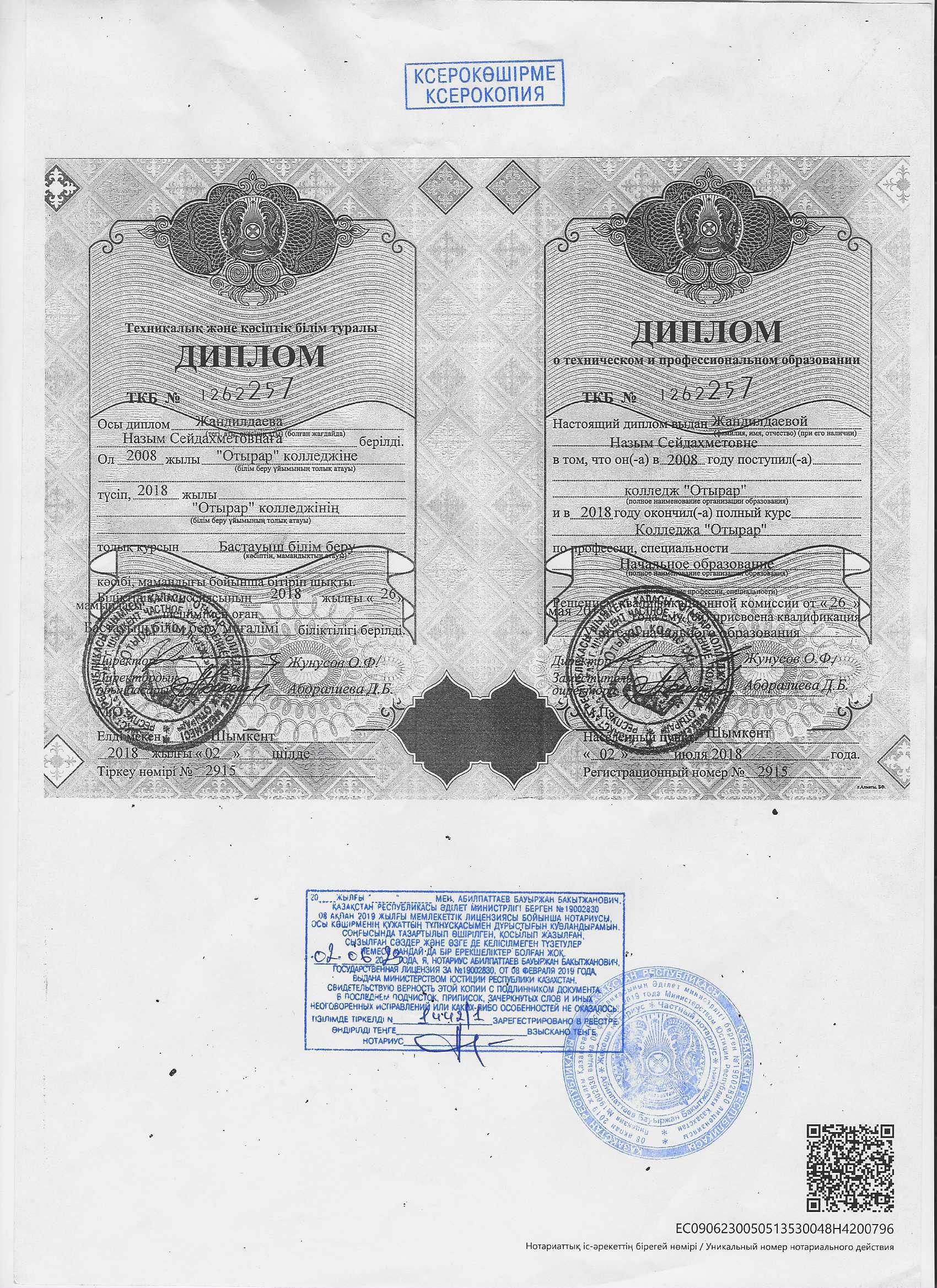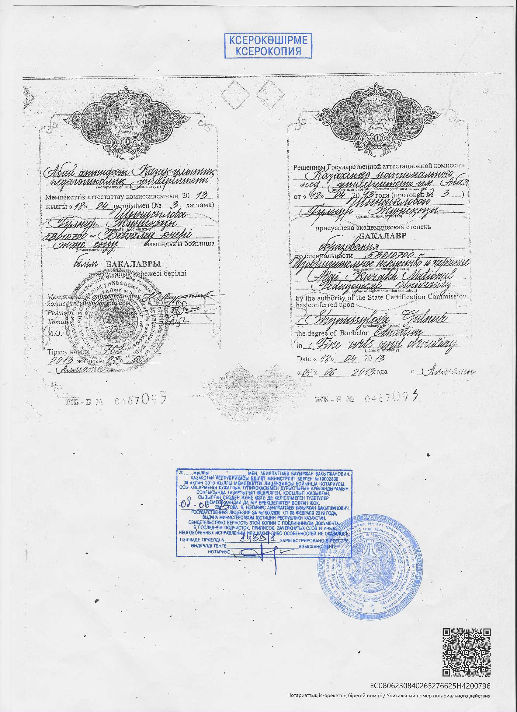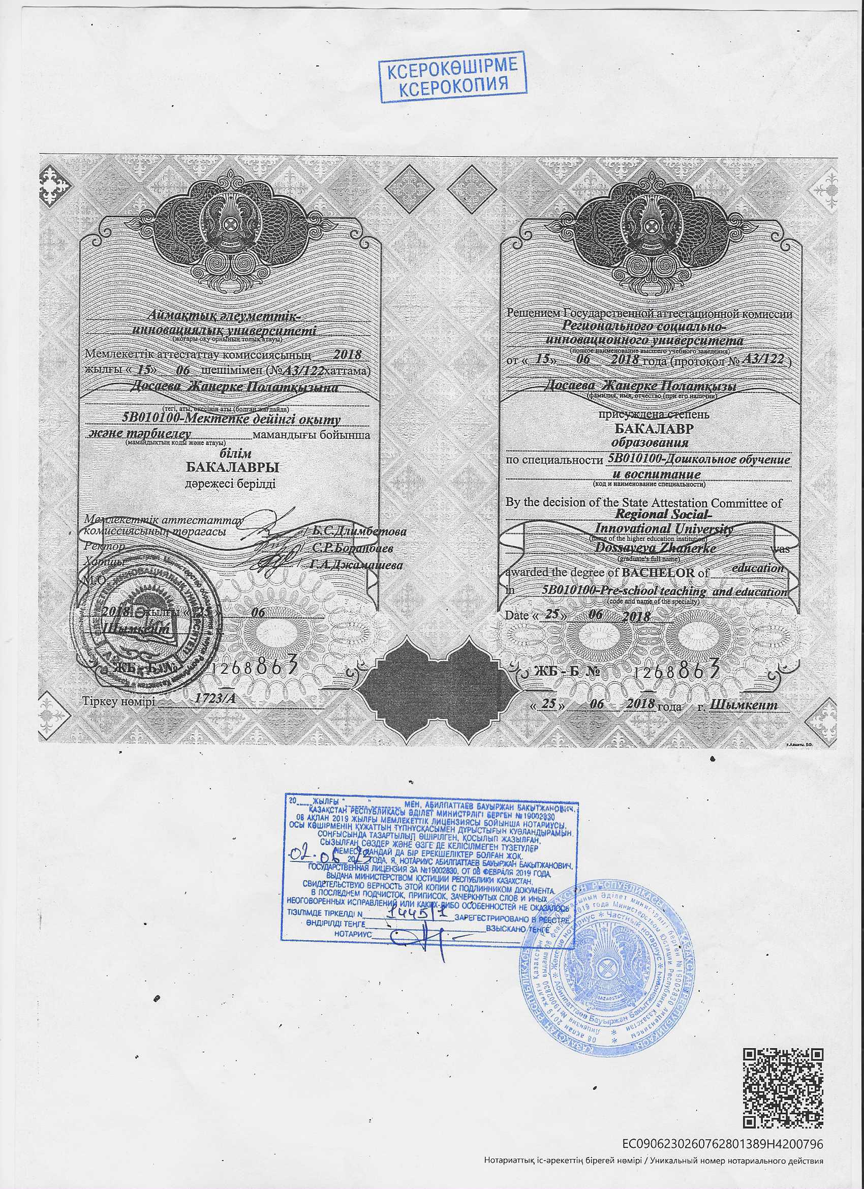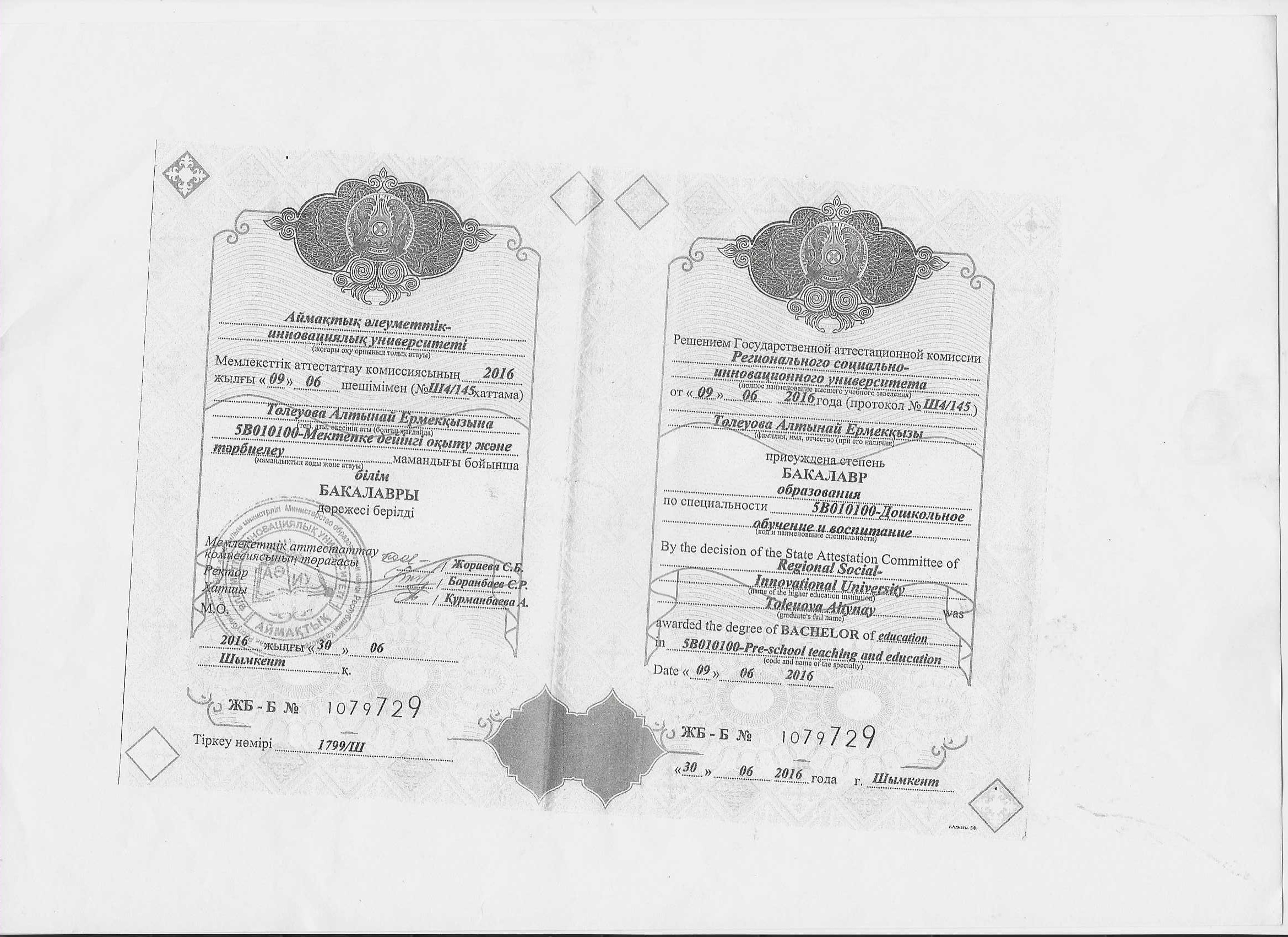Тулегенова Толғанай сертификат